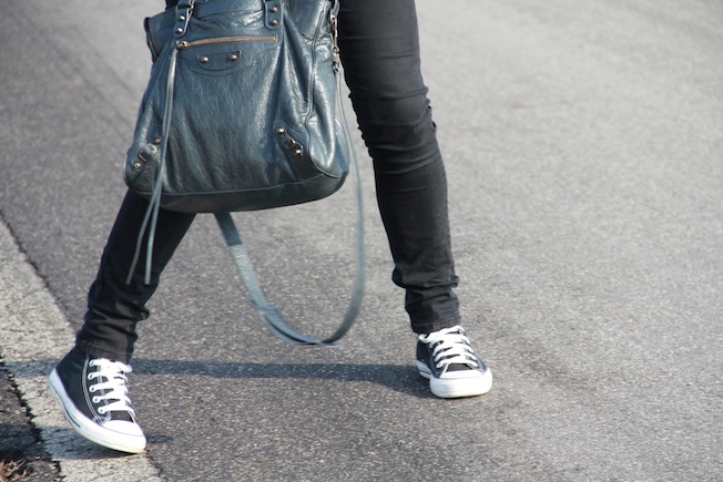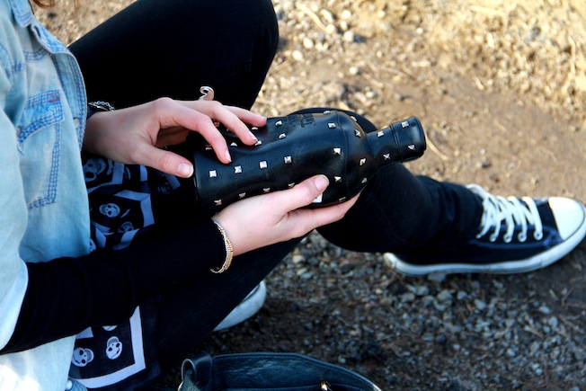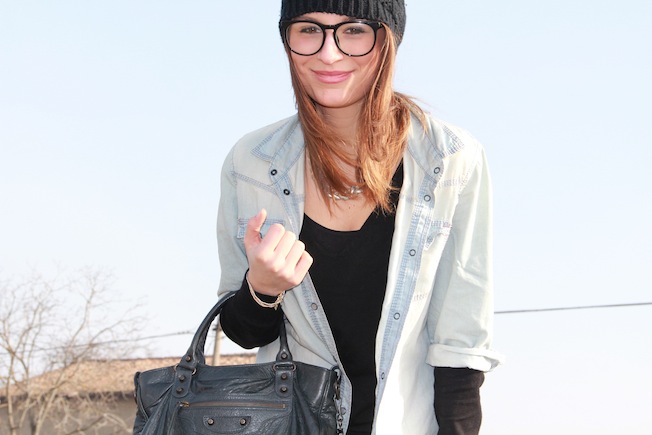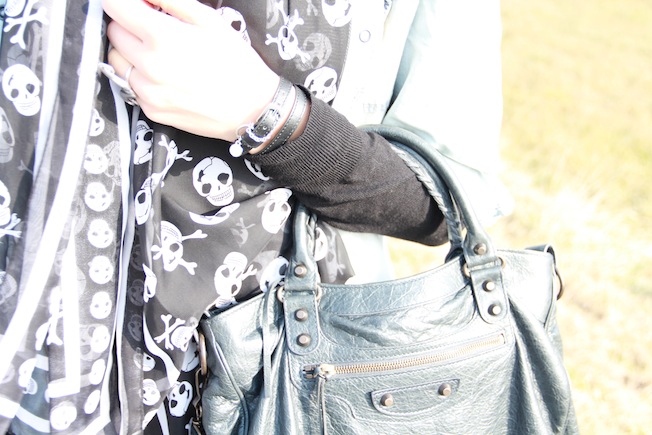 Ieri ho scelto questo outfit in cui mi ritrovo molto. I jeans sono Cheap Monday e sono sicuramente tra i più comodi che ho, la camicia mi sta decisamente larga ma a me piace così! La borsa e la collana sono invece due graditissimi regali per il mio ventesimo compleanno. Mi dispiace che la foto dell’anello sia venuta sfuocata, comunque sia potete vederlo nelle altre o qui in fondo al post, è un anello con due baffi giganti in argento. La pochette borchiata che vedete invece è una custodia dell’Absolute Vodka che amo follemente e che da due anni ormai custodiche i miei trucchi da borsetta.