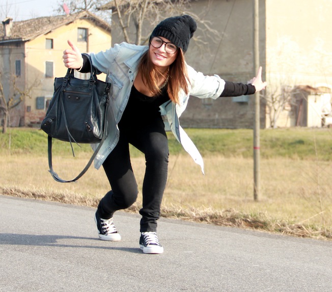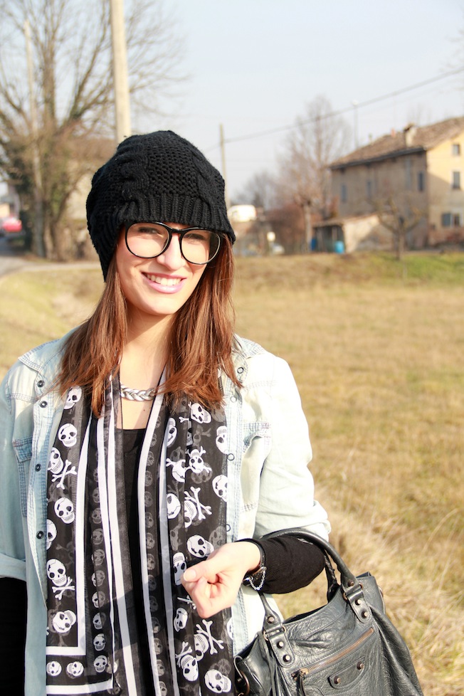 Yesterday I choosed this outfit in which I find myself very much. The jeans are Cheap Monday and are certainly the most comfortable I have, my shirt is quite large but I like it! The bag and the necklace were two very welcome gifts for my twentieth birthday. I’m sorry that the photo of the ring has come out of focus, whatever you can see it in the other pics or here at the end of the post,is a ring with two giant silver mustache. The studded clutch bags you see i is a cover of the Absolute Vodka, I love it madly and since two years it was my beauty case!