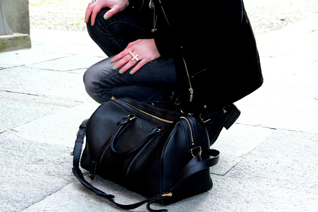 Yesterday was the first day of total relaxation and freedom, I got up at 11 (FINALLY) and I’ve taken a ride downtown with my sister for various purchases, I found and tried the Prada glasses that I like more and more unfortunately !!!!! Does anyone know where can i find them online? I bought a pair of jeans from Zara of a particular color that I love, you will see them online soon!! On this occasion I wear a very esay look, forced also by the low temperatures of these days.