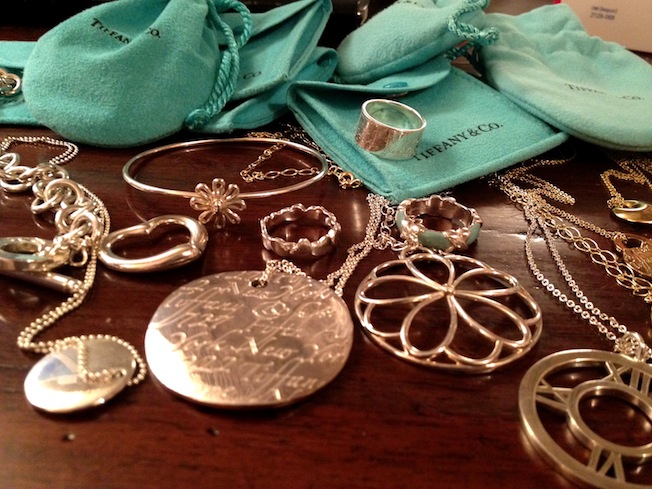 Ebbene, anche se devo ammettere di non adorare Tiffany come molte altre ragazze della mia età, oggi sono stata a casa di un’amica (del blog WomanActually) decisamente “in love with Tiffany” e quando mi ha mostrato PARTE della sua piccola collezione non ho resistito e ho fatto le foto per voi!