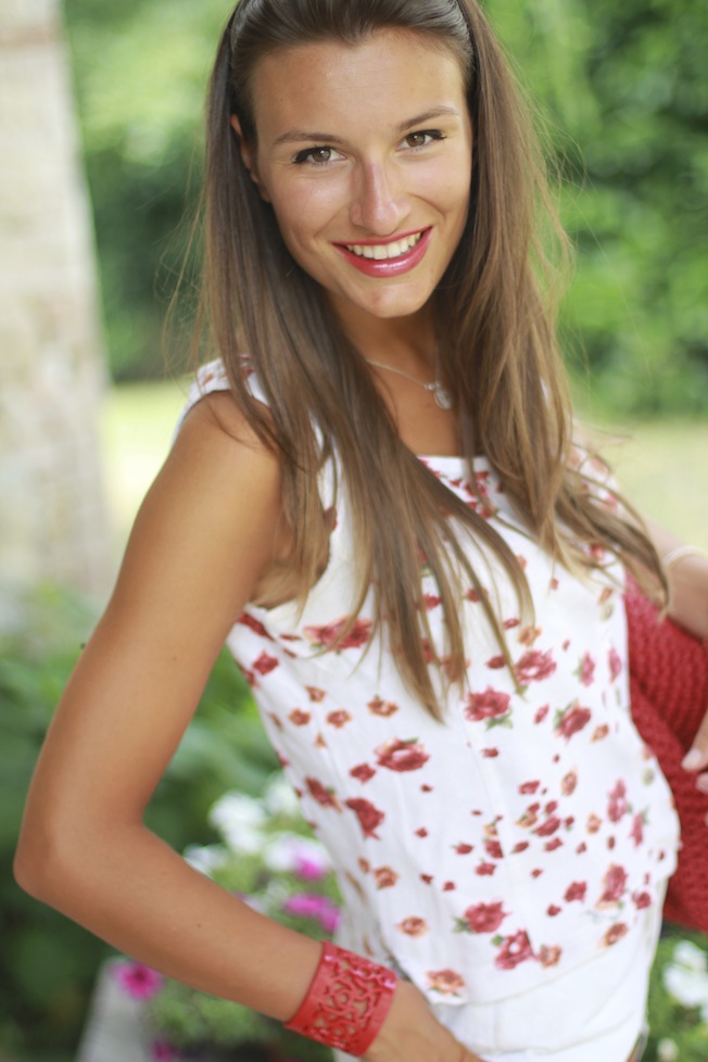Per ora invece vi lascio l’outfit che ho indossato martedì quando, in un guizzo di sentimento vintage, ho creato questo look bianco e rosso partendo dalla magliettina a fiori che ho trovato nel cassetto di mia zia! Che ne pensate? Fatemi sapere! Sono proprio curiosa di sapere che ne pensate… vediamo se indovino ;-))