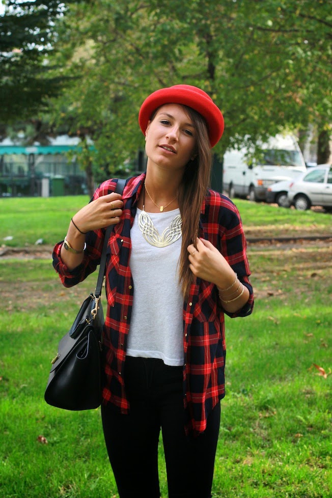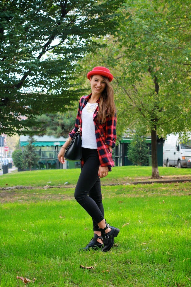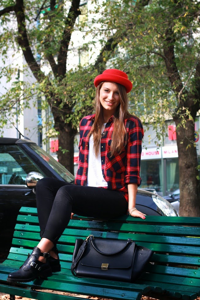 Per quanto riguarda invece il mio look reinterpretato a modo mio il Grunge Style, che tanto andrà nei prossimi mesi, indossando un paio di jeans neri super skinny, stivaletti di Zara <3, borsa capiente e comoda di Céline e camicia scozzese rossa e nera! Che ne pensate??