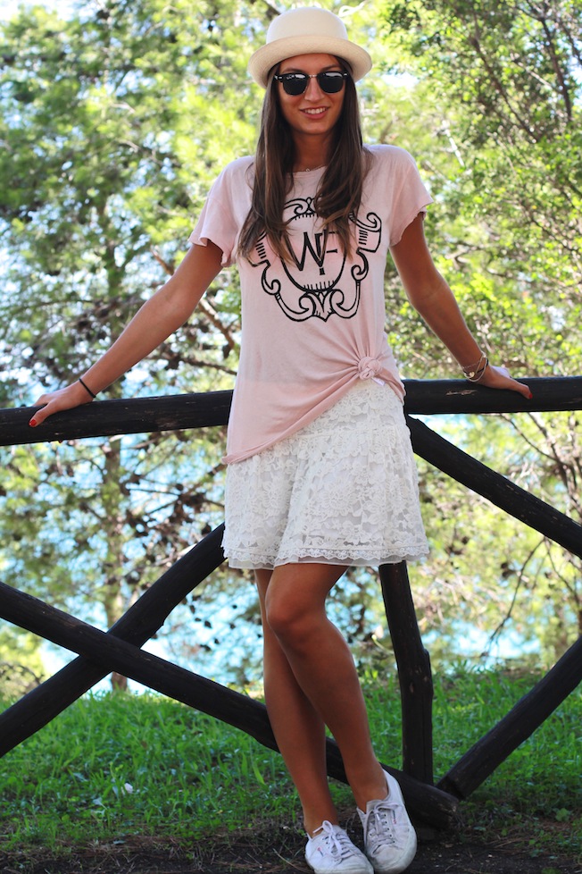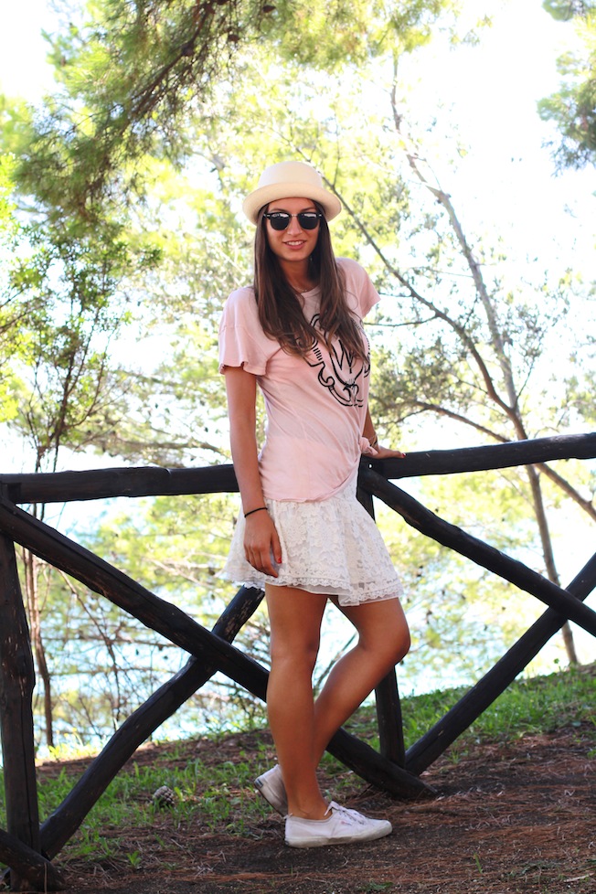 Il mare è davvero stupendo ed è stata sicuramente la giornata con il clima ideale!! Per l’occasione ho indossato la mia nuova tshirt di WildFox (avete visto anche l’altra mia tshirt sempre di Wildfox che sto usando come pigiama??) e l’ho abbinata con una gonnellina in pizzo di Zara Bimbo, cappello Borsalino e i miei nuovi RayBan Clubmaster che ho finalmente preso prima della mia partenza!