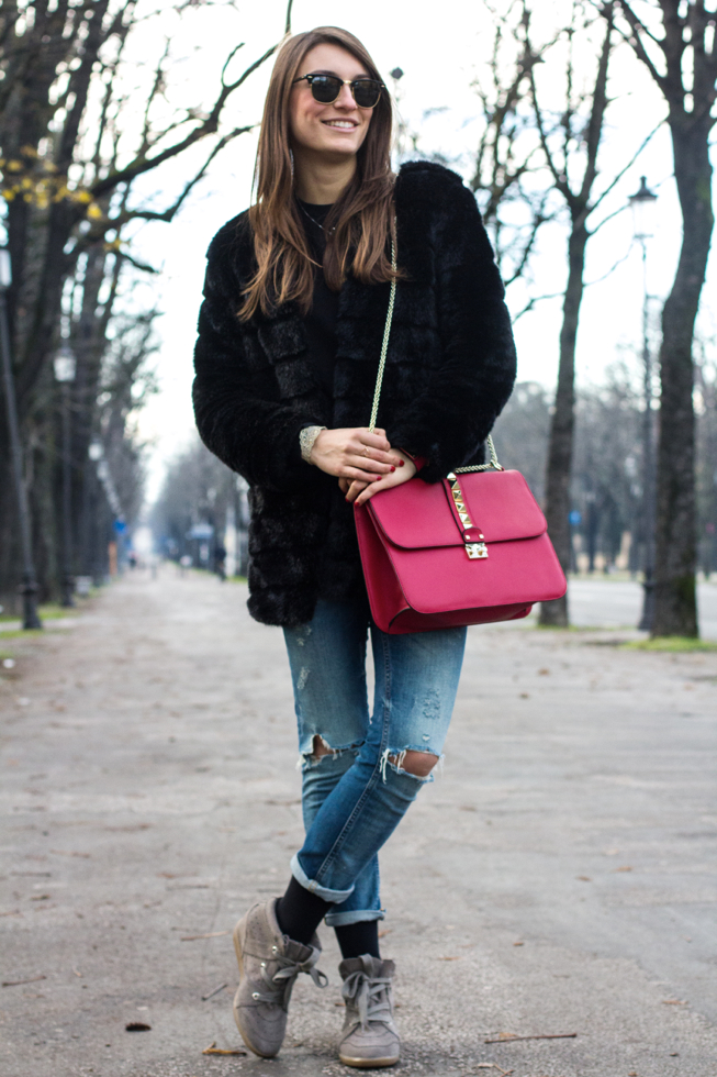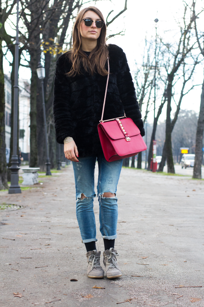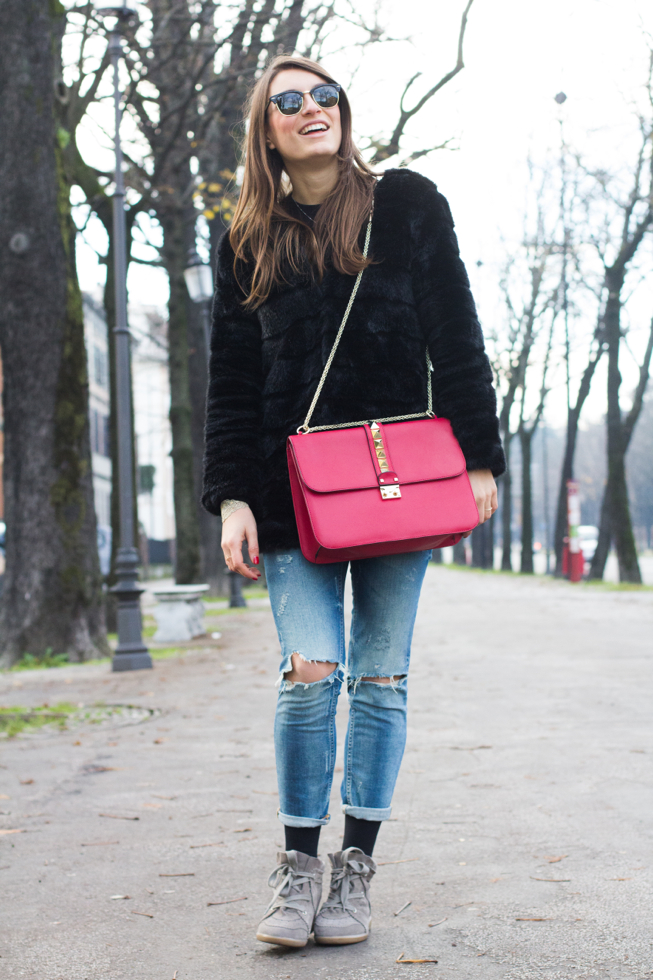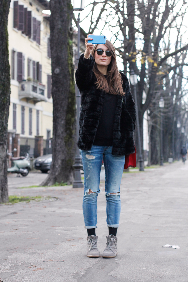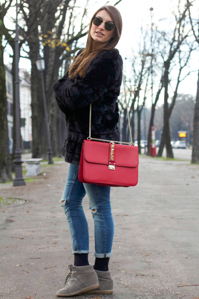 I wore some new entries I have (almost entirely)bought to myself for Christmas: the Isabel Marant Bobby shoes I wanted to buy for a long time and the Valentino bag that I chose in red, perfect color!