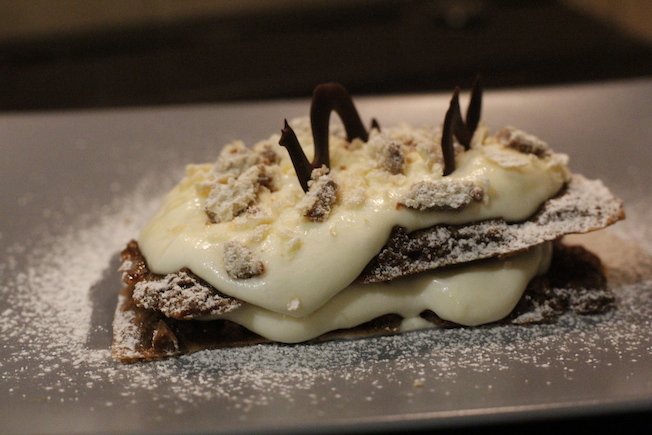 Si tratta di una millefoglie composta da una base di wafer sbriciolati e sciolti insieme al cioccolato bianco, arricchita poi con una chantilly resa croccante dalla presenza di briciole di Tortina White!