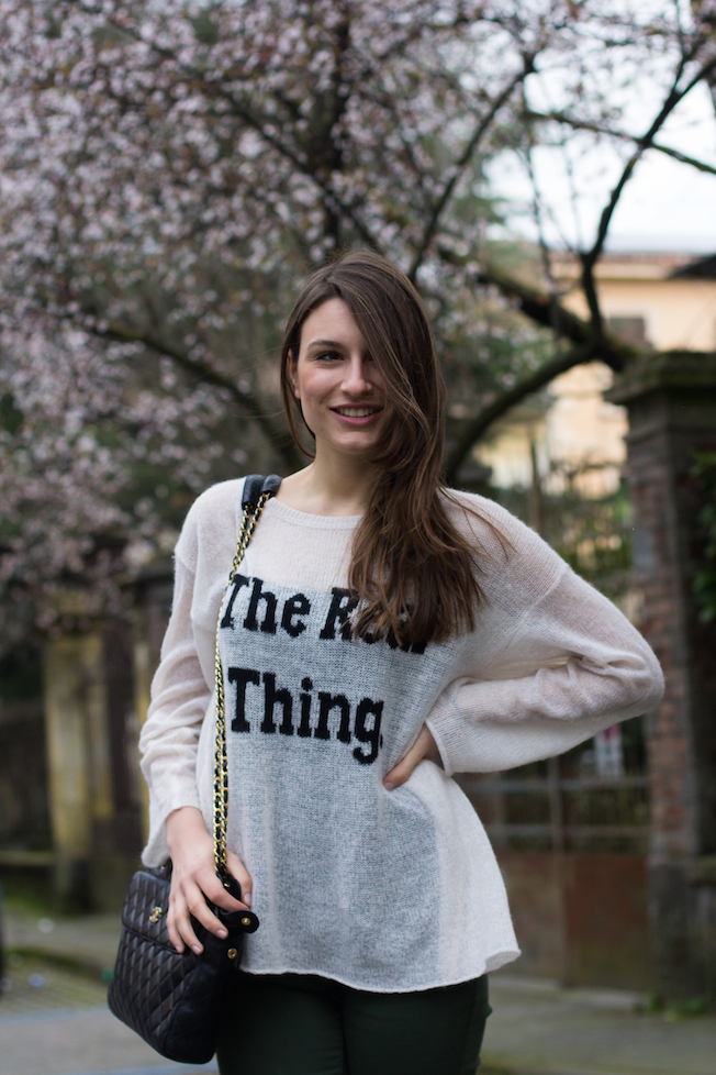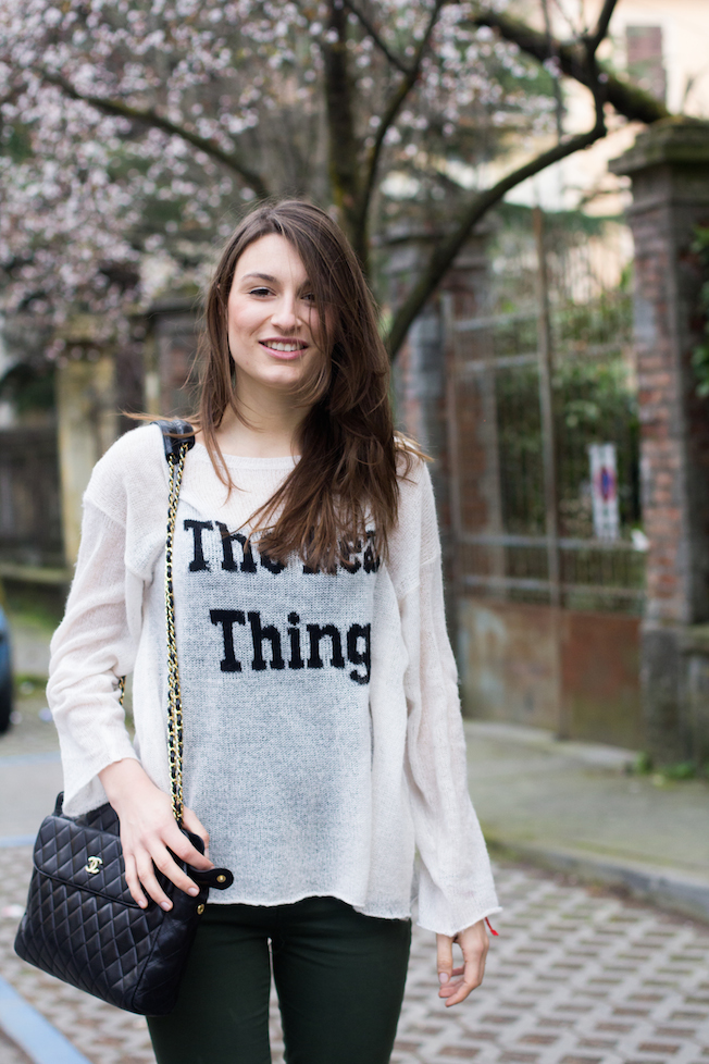 Il focus è sicuramente su questo magliocino leggero di WildFox che ha una scritta molto eloquente “The real thing”, quello su cui forse dovremmo concentrare la nostra attenzione e le nostre energie nella vita di tutti i giorni!