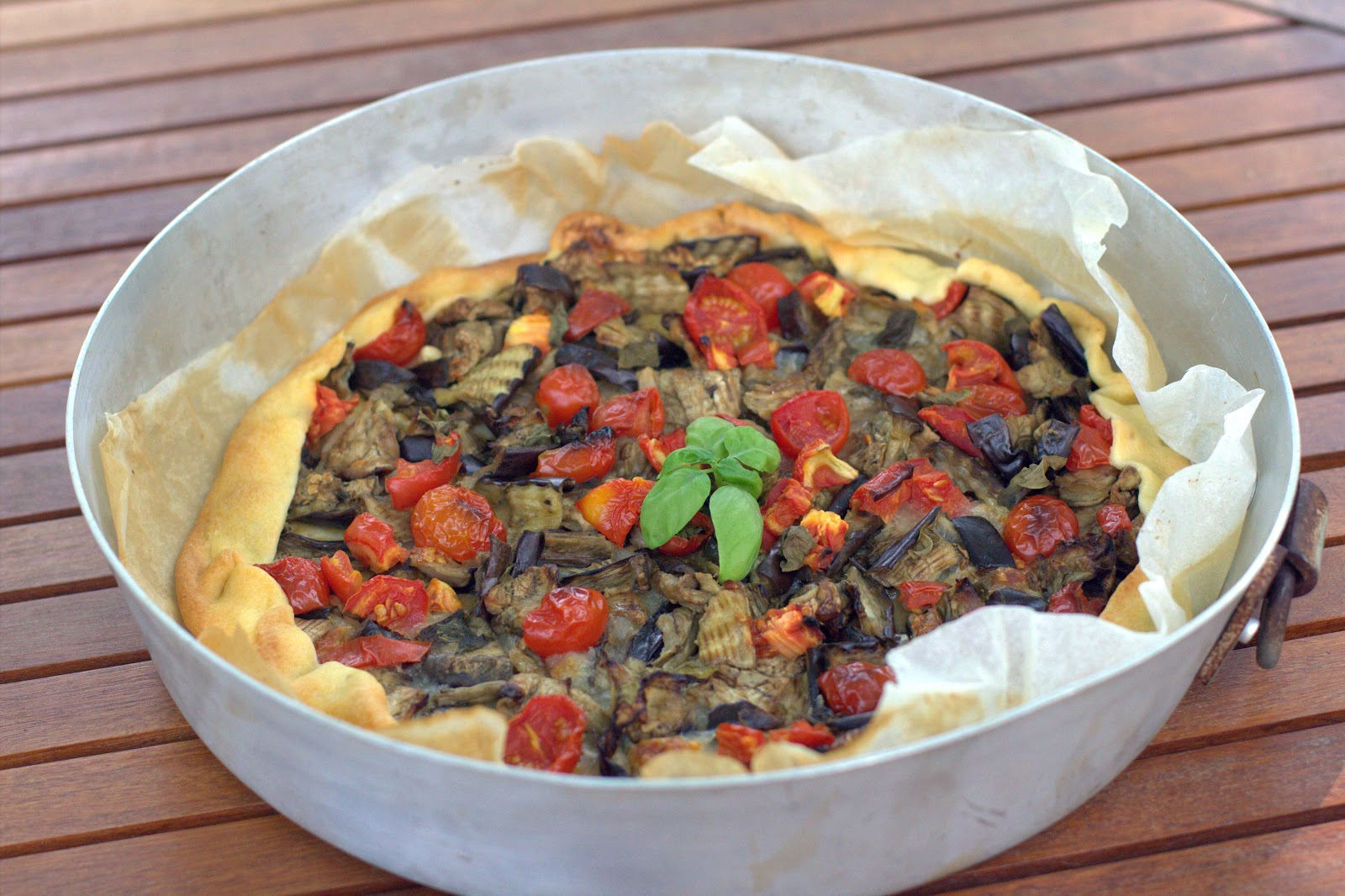 Oggi vi propongo una Torta Salata di Melanzane e Pomodorini che è sicuramente molto estiva, veloce e perfetta da preparare in anticipo per una cena o aperitivo con gli amici!