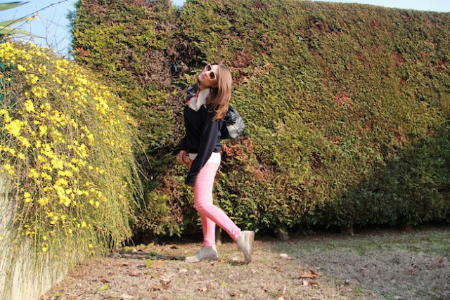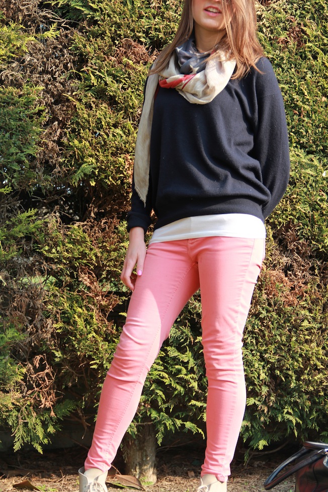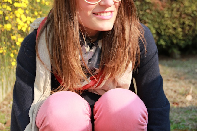 Hello! Here there are some photos taken last week after returning to my university class! To bring my books I usually use this large bag of H&M man who, despite its 2 years of life, resist (at least for now). In addition to it I always wear also my bag on duty because I don’t want to transfer wallet, iPhone and a thousand of other things I have in my purse! The key-chain is a reminder of a job I did last year for many months with a good friend of mine just with Campari, about the scarf and the shoes I had already spoken! The glasses are a purchase of few years ago bought in a shop in Parma, that not even exist anymore, its name was LattePiù and now his name is Melody Black Market, it sells things a bit different now but it is always a special shop where you can find, above the Cheap Monday and April’s Jeans, particular and special things that you can’t easily found in other stores!