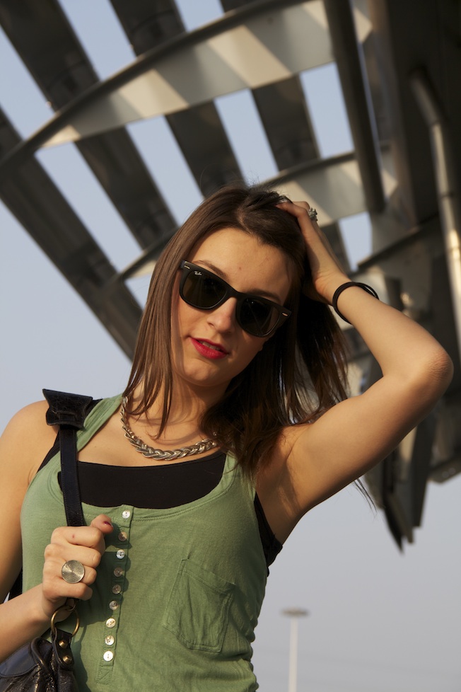 Ecco alcune foto scattate qualche giorno fa con un look un po’ aggressivo forse ma per cui sono riuscita a trovare il giusto set fotografico! La canotta di Bershka è dell’anno scorso ma credo che il colore pastello la renda sfruttabile al 100% anche quest’estate! So già che questi leggins lucidi non piaceranno a tutti e sopratutto non molto agli uomini (mio padre ogni volta mi chiede se è carnevale quando li indosso), ma a me piacciono se abbinati in modo non volgare e non con il lato B al vento! Oggi mi è arrivato il pacco con un paio di scarpe acquistate qualche giorno fa online…Non vedo l’ora di metterle e di pubblicare le foto!! Ho anche gli acquisti fatti al Cosmoprof da mostrarvi, se riesco faccio un post nel pomeriggio o al massimo domani! Un abbraccio a tutti!