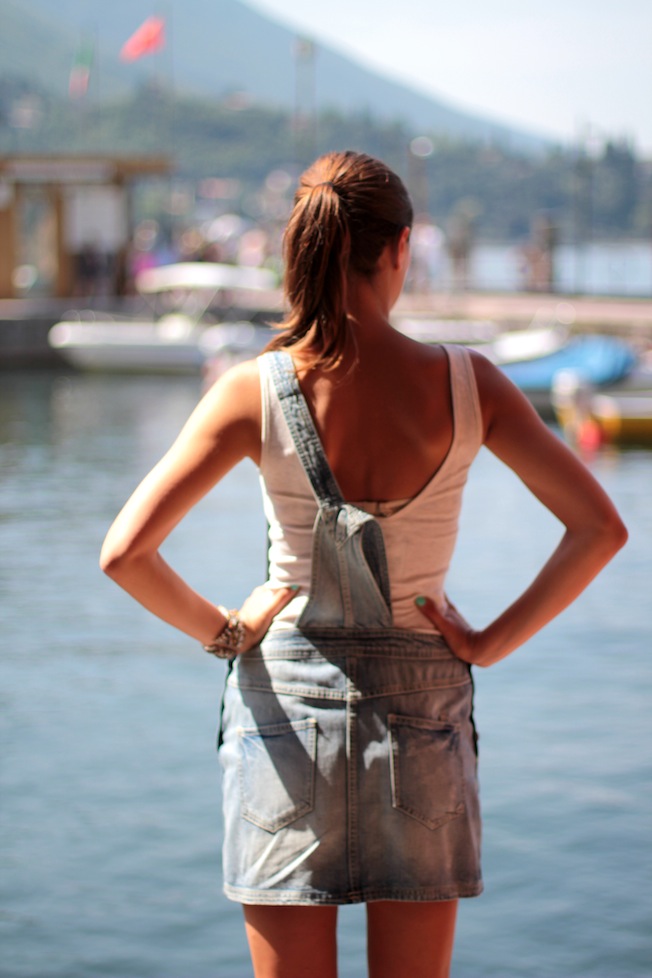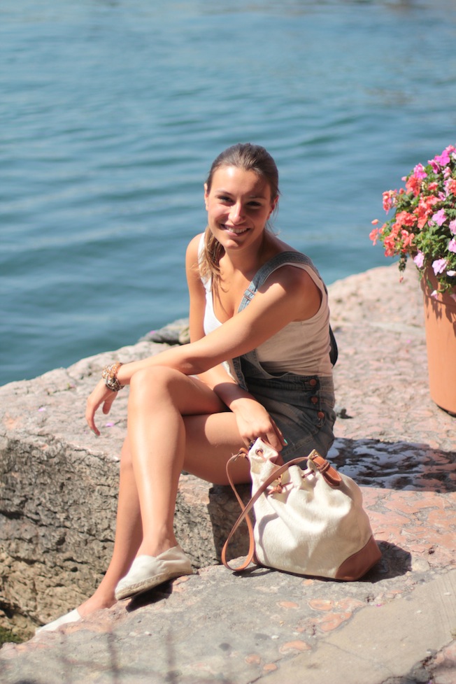 Today I decided to show you the first photos I shoot at Malcesine during a little walk around the village to do some shopping! The outfit I wore was very comfortable: a denim salopette perfect for hot days, a beige basic t-shirt and my inseparable espadrillas! To shoot this pics my friend lends me her bags that was the perfect touch to complete my outfit! You could see some pics of my Friend and…. you’ll hear more about her ‘cause we are preparing together a very nice and helpful post for you!!