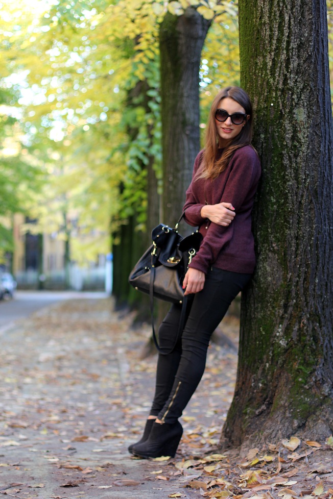 Ecco uno degli outfit più basici e casual che sto utilizzano molto spesso in questi giorni, simile per certi versi a quello della scorsa settimana. Come avevo fatto anche in quel look, ho scelto di abbinare un caldo maglione da uomo (ormai compro solo quelli) con skinny jeans iper femminili e in questo caso anche con un paio di zeppe nere prese due anni fa da H&M!