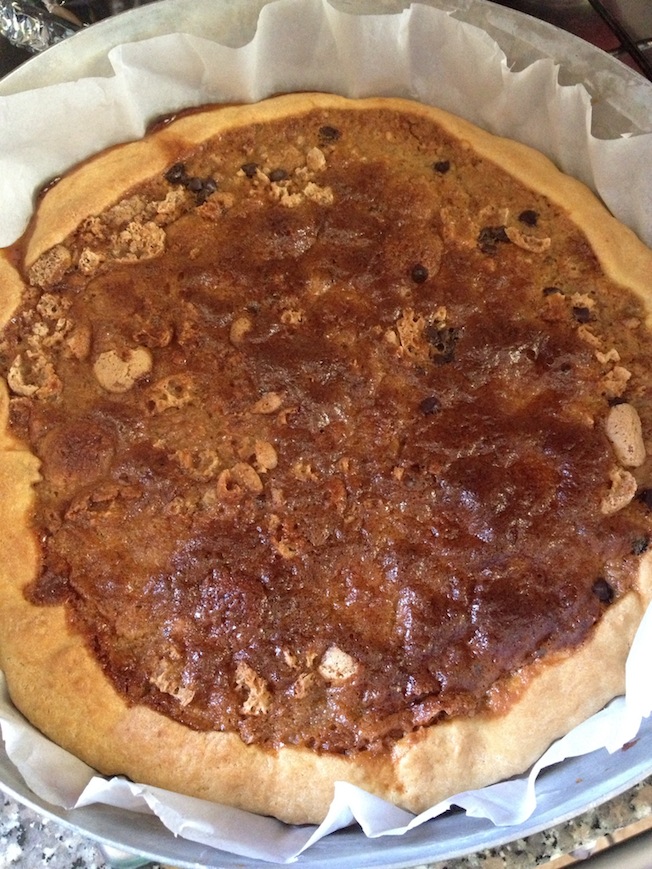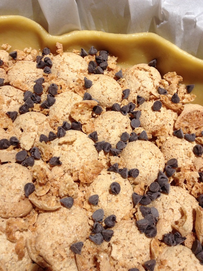 Ora versiamo questo composto sullo strato di amaretti e ripieghiamo i bordi a mo di crostata.