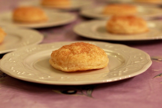 A questo punto prendete la pasta sfoglia, spennellatela con il latte e cospargetela di zucchero di canna. Ritagliate con un coppa pasta 8 cerchi e infornate il tutto a 200 gradi per 10 minuti circa( deve dorarsi in superficie).