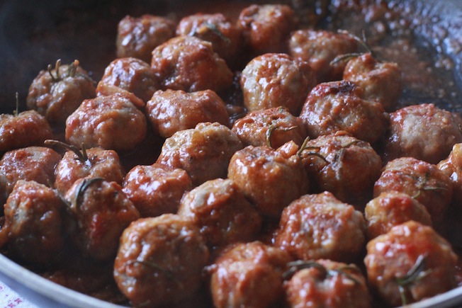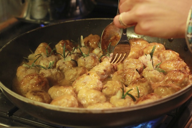 Posizionate poi le polpette nella padella e rigiratele pian piano in modo che si cuociano bene su tutti i lati. Una volta cotte impiattatele con un po’ di sugo e servitele! 🙂