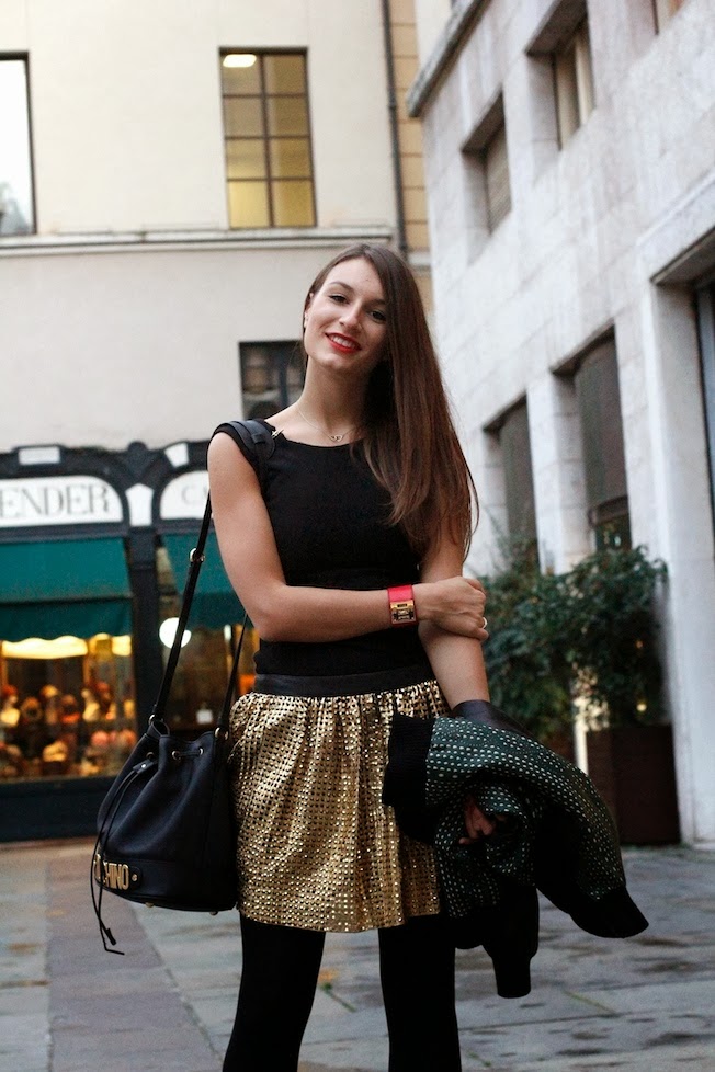 To complete the look I wore some of my birthday gifts: the bucket by Moschino which I’m madly in love, the perfect décolleté found at Aldo Shoes, Hermes Kelly Dog Bracelet and Ikonika bracelet that you can win by participating HERE at the Giveaway began on Monday on my blog!