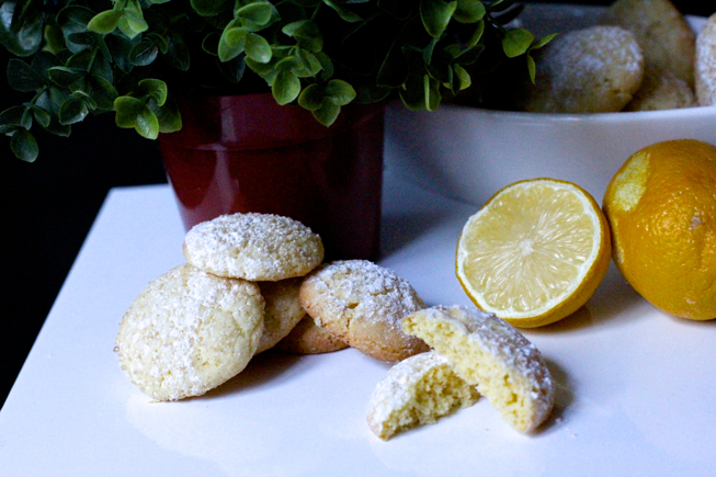 Montate il burro morbido con lo zucchero fino ad avere una consistenza cremosa, amalgamate poi l’uovo e la scorza del limone . Aggiungete la farina con il lievito poco alla volta alternandola al succo di limone. Ottenuto un composto piuttosto solido formate delle palline e passatele nello zucchero a velo aromatizzato con della buccia di limone. Disponete le palline su una teglia rivestita da carta da forno e infornate a 180 gradi per una 10ina di minuti. I biscotti saranno pronti quando inizieranno a verificarsi in superficie delle crepe. Sfornate e lasciate raffreddare. Servite i biscotti accompagnati da una tazza di the o latte tiepido!