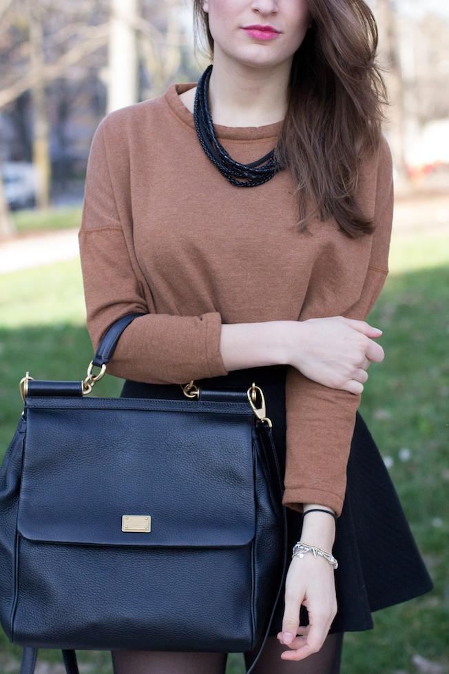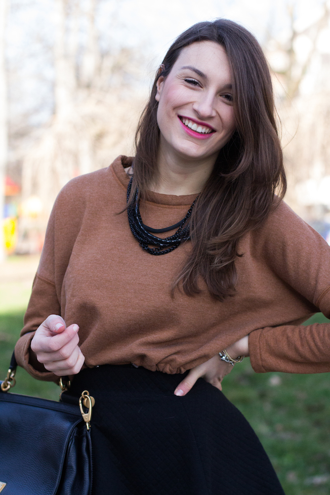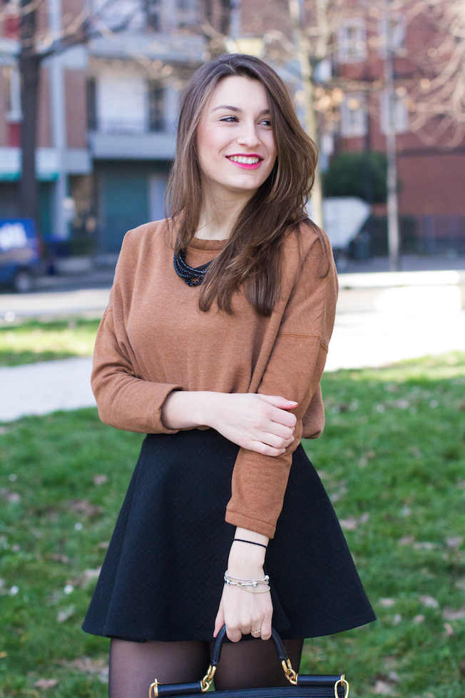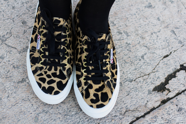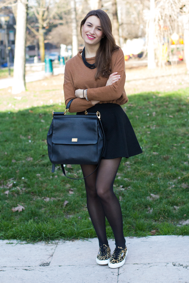 Questo è il look che ho indossato lunedì in una giornata quasi primaverile: ho scelto una felpa corta trovata in super saldo da Zara, una gonnellina corta a ruota e un paio di Superga maculate in cavallino!
