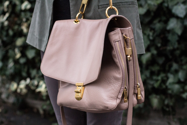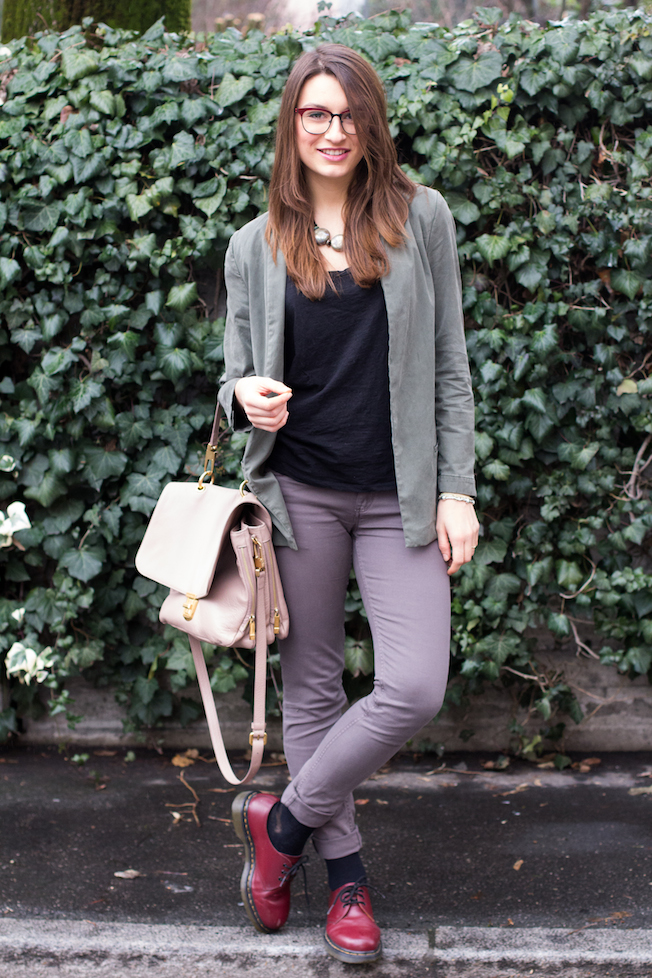 Il look che vi mostro oggi l’ho indossato sabato pomeriggio per un giro in centro e devo dire che l’ho creato davvero in 2 minuti. Avevo paura di accostare così tanti colori diversi in un unico look (perdipiù in una giornata uggiosa), ma alla fine il risultato a me è piaciuto! Il verde militare e il grigio si sposano perfettamente, mentre il rosa cipria dà un tocco bon ton al tutto!