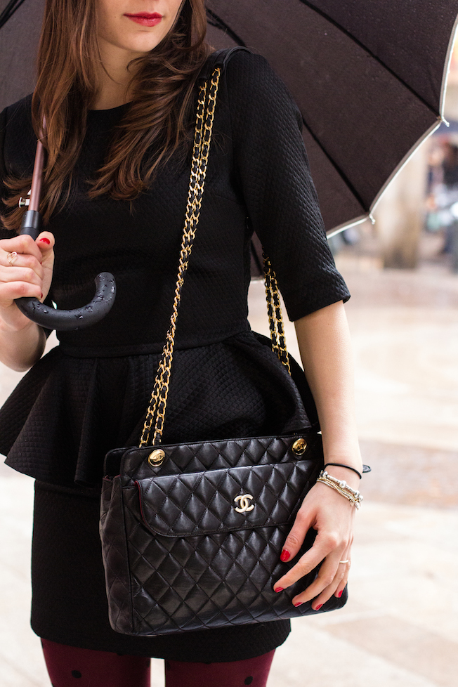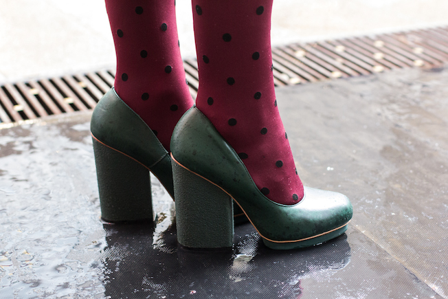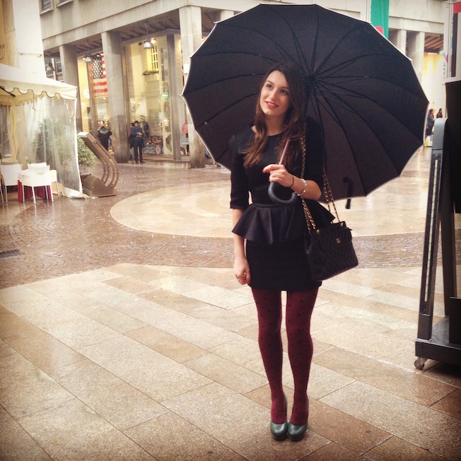 Che ne pensate del mio look per il primo giorno di Fashion Week? Ho scelto questo abito che avevo già indossato per l’evento Collistar ma che non ero riuscita a fotografare, ma che meritava sicuramente un po’ più di “gloria”. Questa volta l’ho abbinato ad un paio di calze a pois (grande trend per la prossima primavera estate), decolletè verde bottiglia, cappottino sale e pepe preso al Temporary di Solofate e Chanel a tracolla)!
